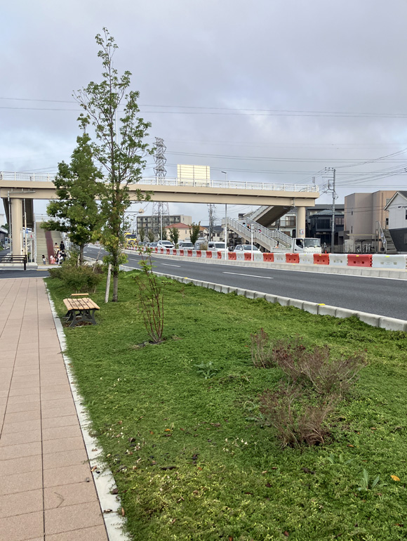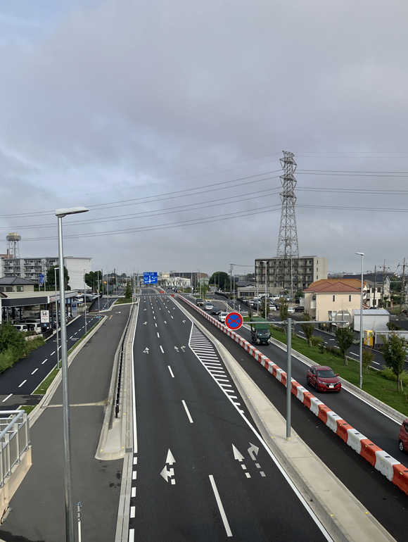 夕方の散歩では、国道沿いを歩き、歩道橋の手前まできました。