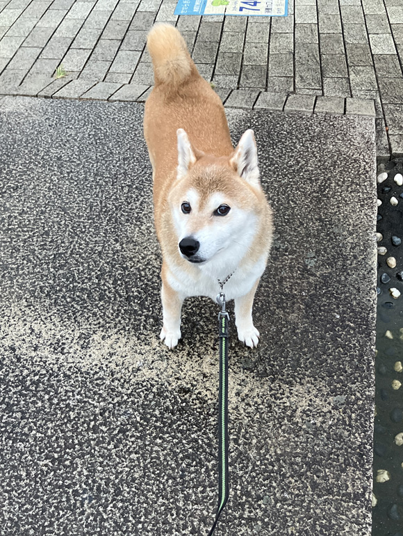 朝の散歩の時間帯は、ずっと曇り空で、雨もパラパラと降っていました。