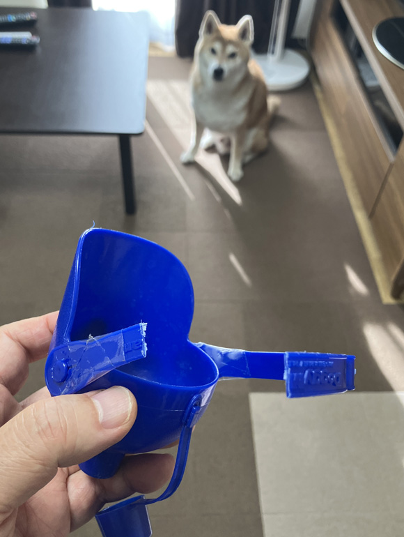 今朝の散歩で散水キャップの持ち手の部分が切れてしまいました。テープで補強していない箇所でした