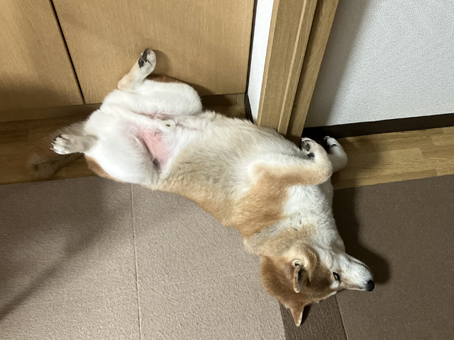 「へそ天」のポチくん、リラックスしていてほっこりしますね。