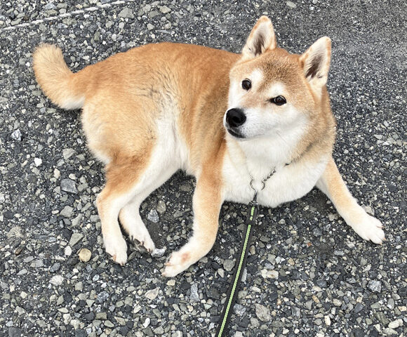 01-今日のポチ 寝転んでほしくはないのですが…… 今日も曇り空の一日でした。ただ、幸いなことに、今日は終日、雨が降ることがありませんでした。朝・夕の散歩の時間帯も、暑くも寒くもない陽気で、快適に歩くことができました。 2025.10.07 2 01-今日のポチ