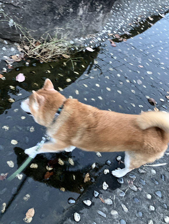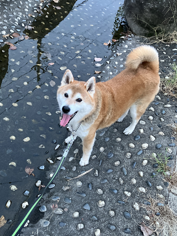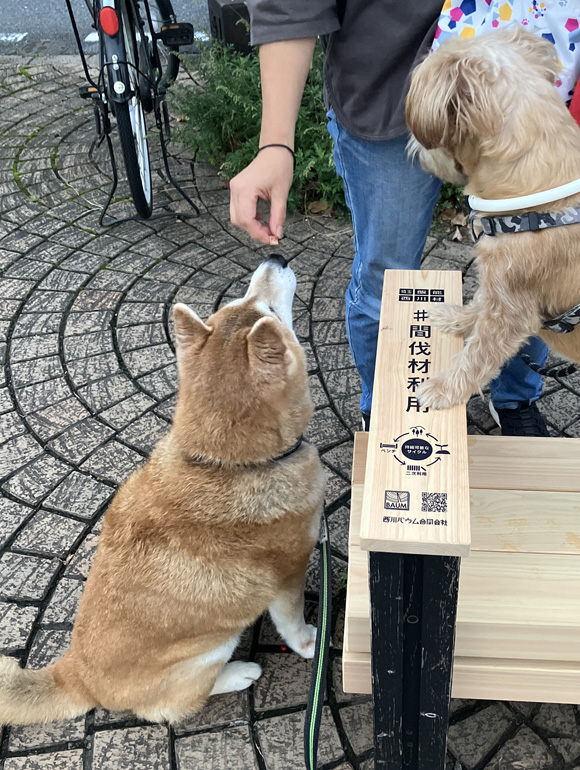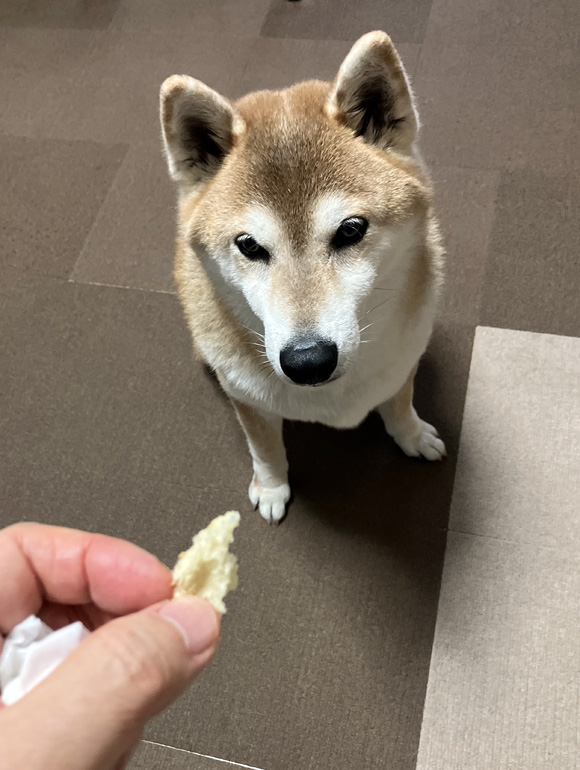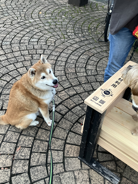 いつもの場所では、オヤツをくれる飼い主さんを見つけ、オスワリの体勢になりました