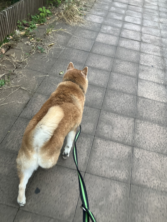 今朝の散歩では、その洗った長袖シャツを着て出かけました。