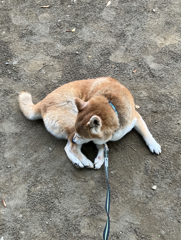 ここは地面が土なので、本当は寝転んでほしくはないのですが…。家に帰って濡れタオルで体をしっかりと拭きました