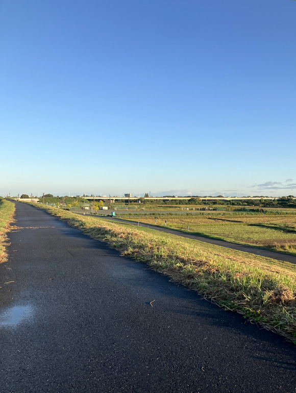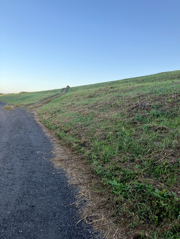 堤防には所々水たまりはありましたが、空のほうはよく晴れていました