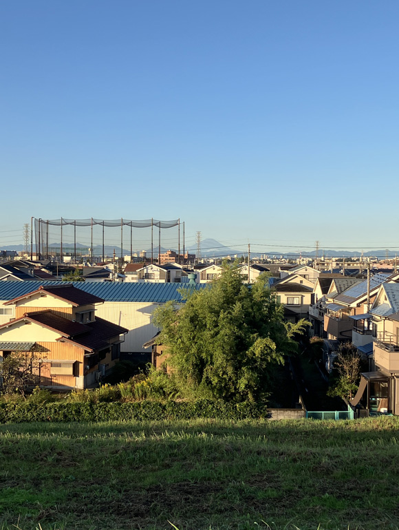 今朝は堤防の散歩コースに向かいました。堤防へ上る坂道から、青空が見えました