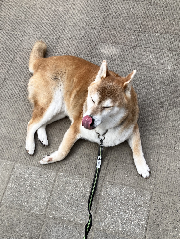 のんびりと休憩中のポチくんの様子や可愛い笑顔に癒されます。