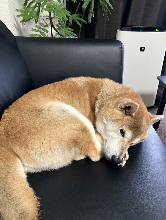 僕が野球中継を見ている横で、ポチは丸まって寝転んでいました。柴犬の悲しい事件があると、愛犬のこのような姿がより愛おしくなります