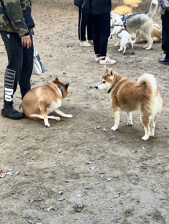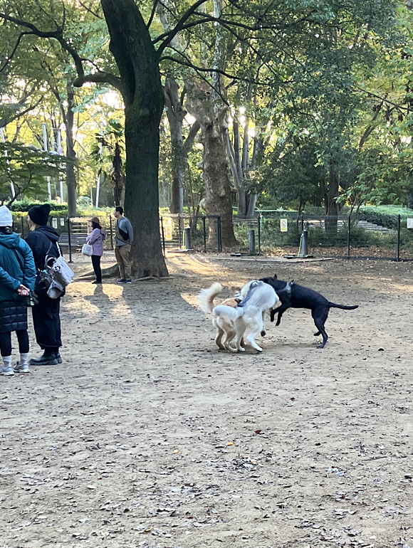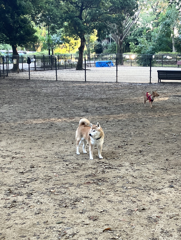 公園には朝7時過ぎに着いたのですが、ドッグランではすでに多くの犬が遊んでいました。