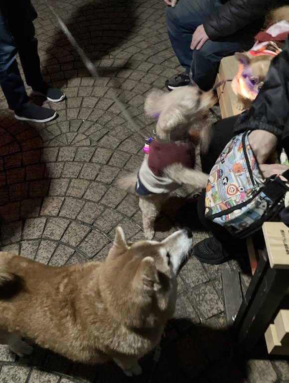 夕方の散歩では、いつもの場所でオヤツをもらうことができました