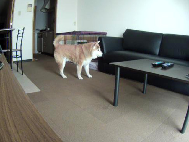 以下の4枚は見守りカメラより。ソファに乗ろうとしているところでしょうか?