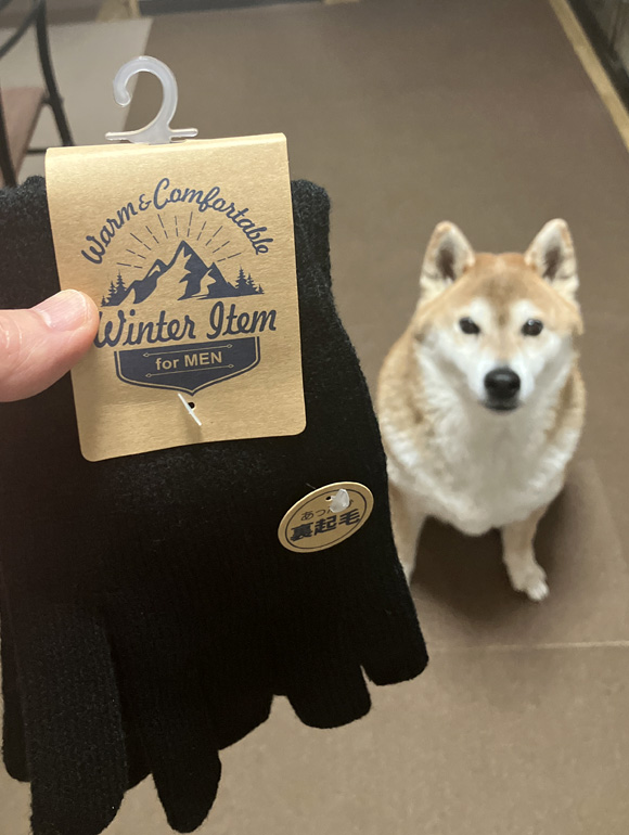 昨年100円ショップで買っておいた手袋を、今朝の散歩では身に着けました