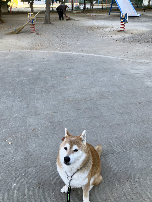 いつもの小公園では、掃除をしているスタッフがいました。そのおかげで、落ち葉が少なかったです