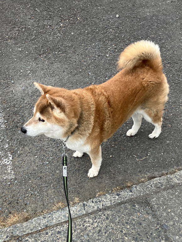一時的に弱い雨に降られましたが、ポチは元気良く散歩していました
