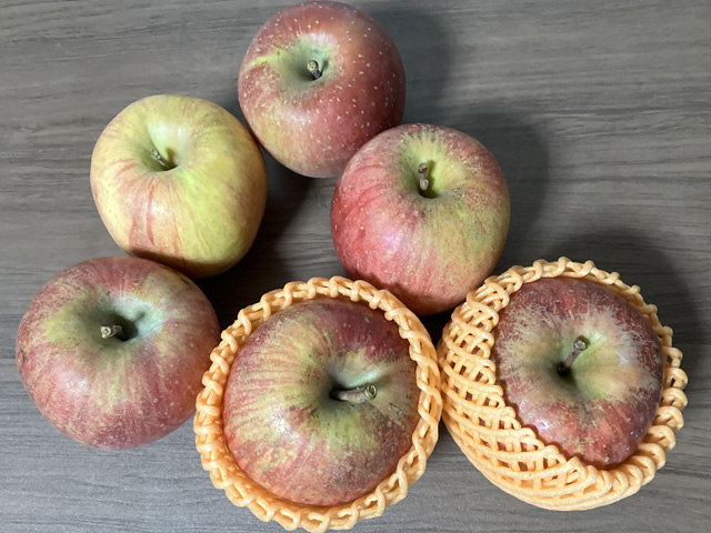 こちらがゲットしたリンゴ。大きなサンふじが6個で1,000円でした。見かけは少し悪いですが、蜜がありとても美味しいです