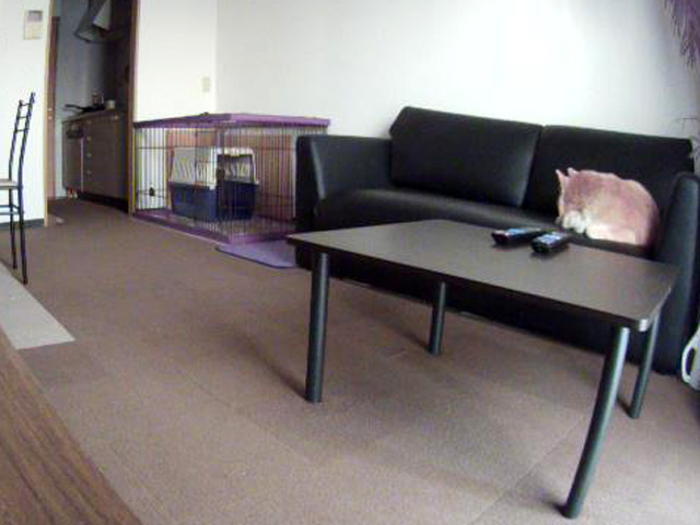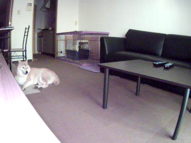 以下の3枚は見守りカメラより。大きなあくびをしてますね