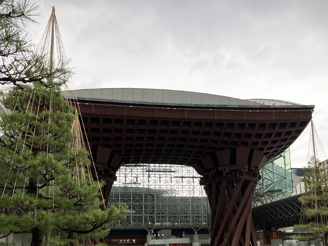 金沢には4年降りに行きました。これは金沢駅の「鼓門」です。今日は小雨が断続的に降るあいにくの天気でした