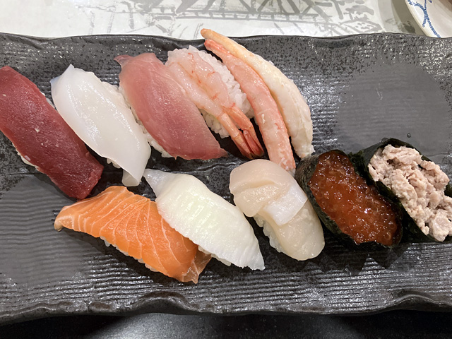 こちらは「グルメ盛り」の10貫(1,430円)。お馴染みのネタですが、どれもとても美味しかったです