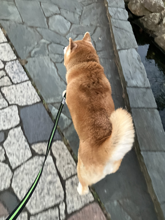 夕方の散歩は、朝と違って、ポチは楽しそうに歩いていました。