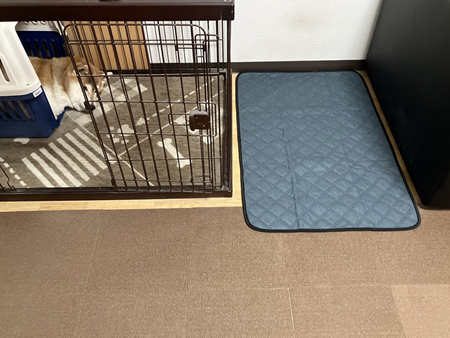 そこで、ベッドの代わりにリビングルームにトイレシートを敷くことにしました。