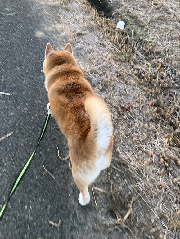 今朝は-1.8度まで気温が下がりました。寒い中でもポチはずっと早足で散歩していました