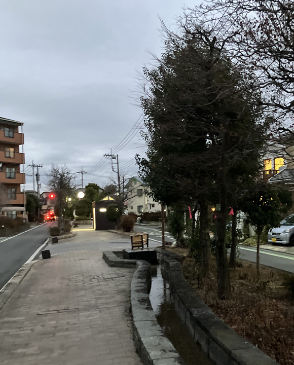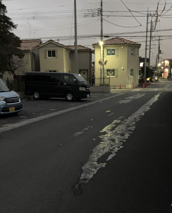 今日は朝の6時過ぎに散歩を開始しました。まだ音は真っ暗で、道路には雪が残っているところもありました