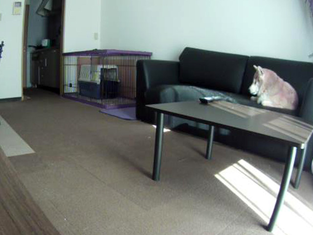 「見守りカメラ」のポチくん、いつものようにソファーで寛いでいるように見えてもお目目がパパさんを待っているように見えて。