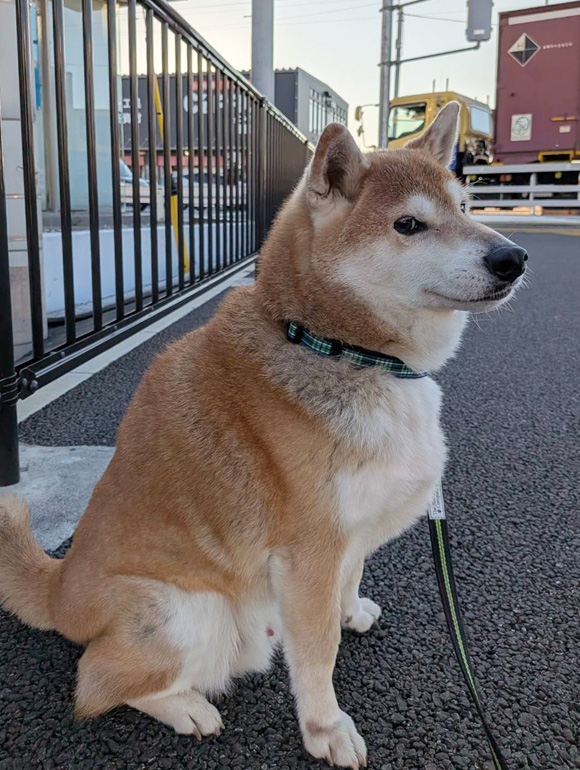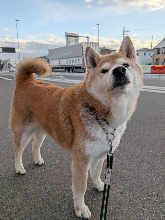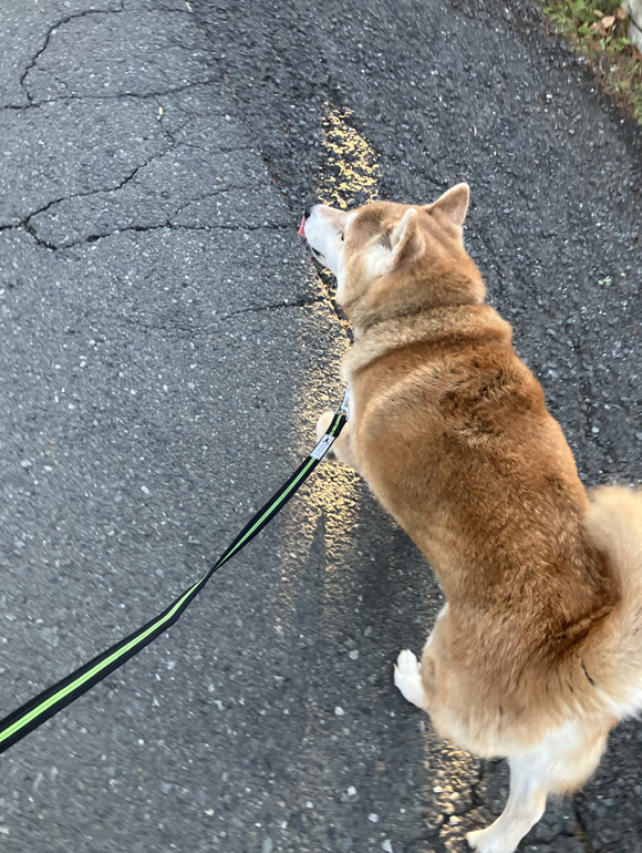 以下の写真はペットシッターさんが撮影したものです。国道のバイパス沿いを散歩しています