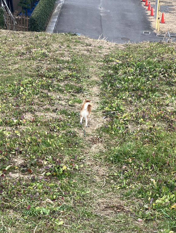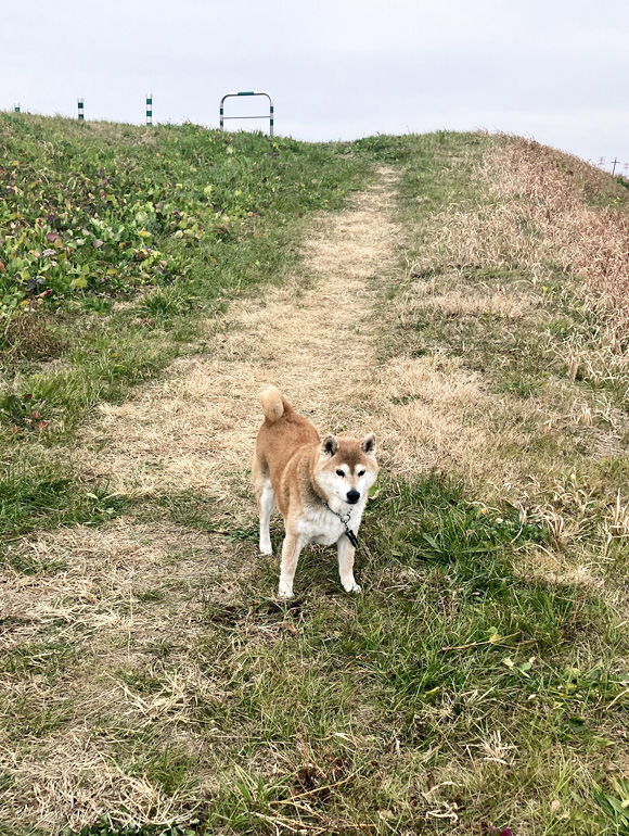 堤防を駆け下りるポチくん、カッコいい!!!