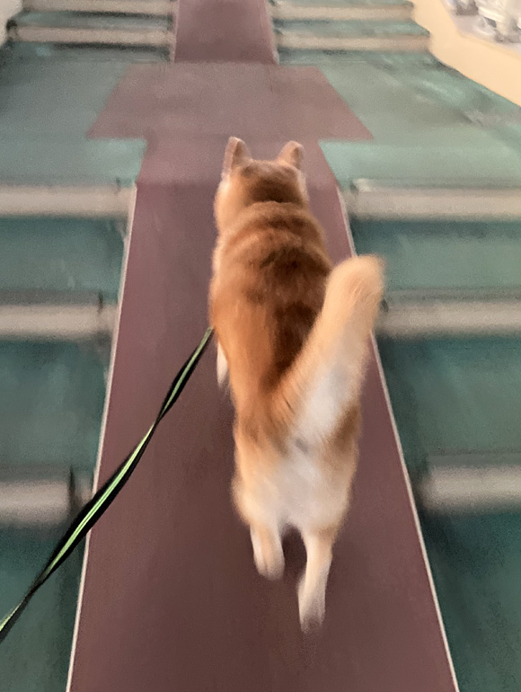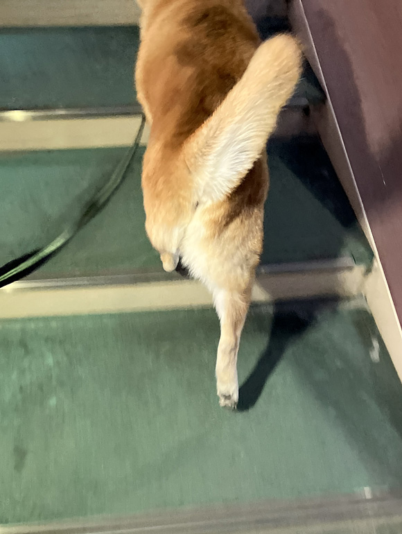 ポチは4月には14歳になる高齢犬なので、階段はいつも慎重になります。