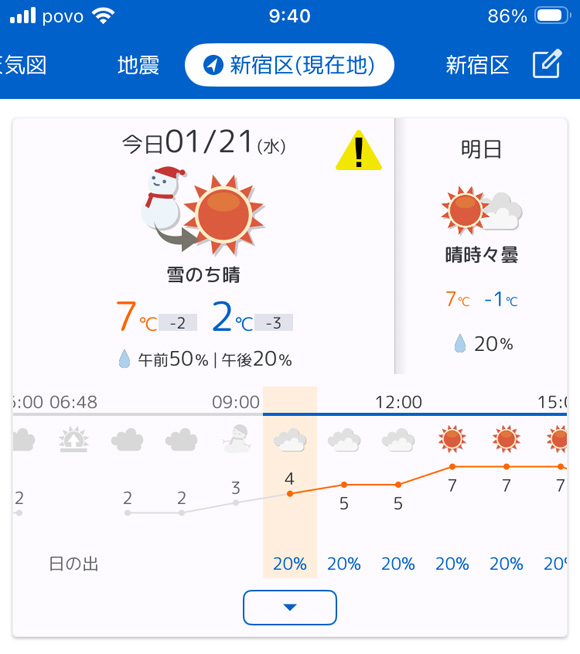 寒波の影響で新宿でも雪が降る予報でしたが、実際は降りませんでした