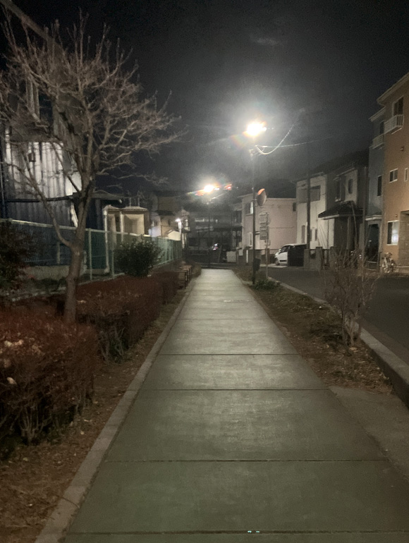 街灯のあるところは少し明るかったですが、やはりブレてますね