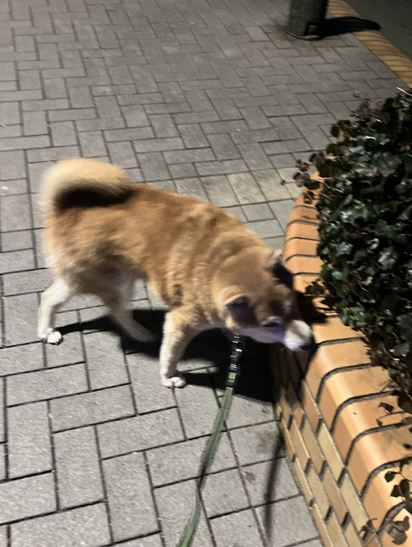ポチは長時間の留守番でストレスが溜まっていたのか、夜も早足で散歩していました。