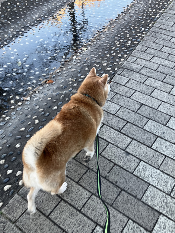 昨日は朝5時の散歩だったので、ポチもちょっと違和感があったと思います。