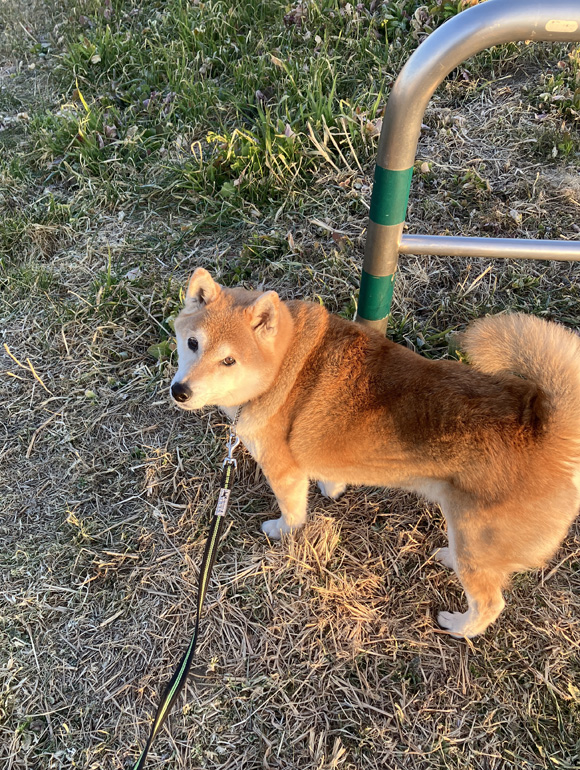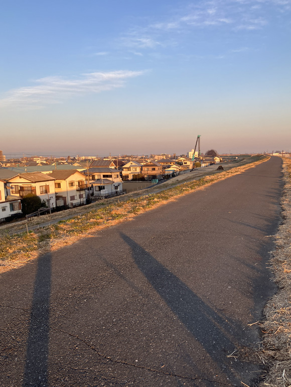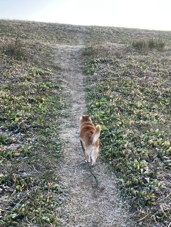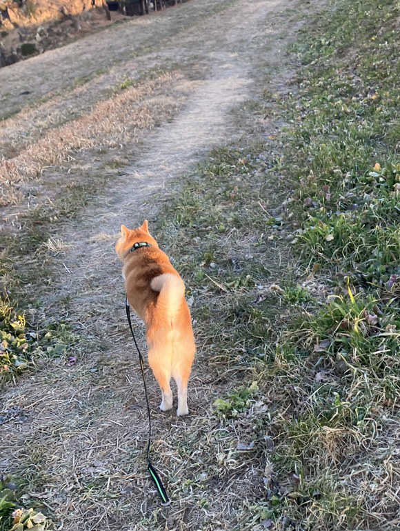 ポチはいつものように元気に堤防への坂道を上り下りし、ずっと早足で散歩していました。