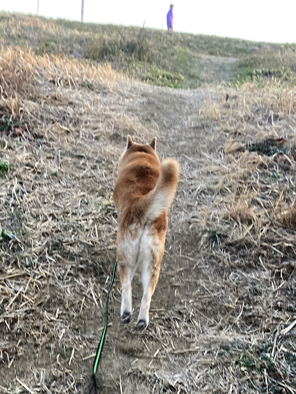 ポチはいつものように元気に堤防への坂道を上り下りし、ずっと早足で散歩していました。