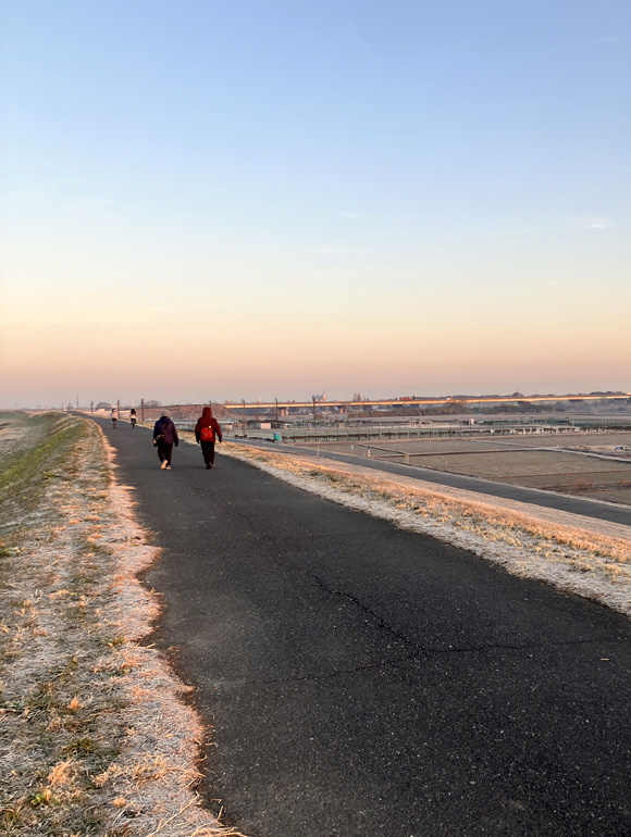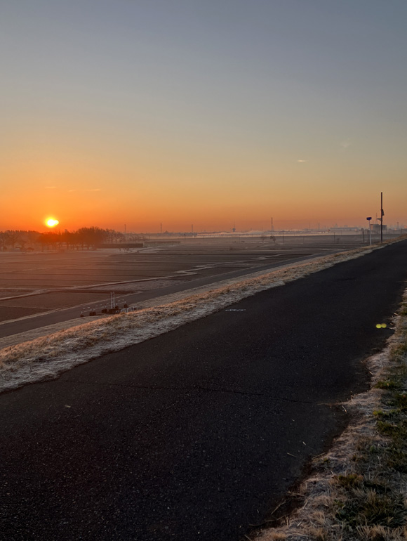 今日の日の出時刻は6時30分。堤防に着いたころに、きれいな朝日を見ることができました