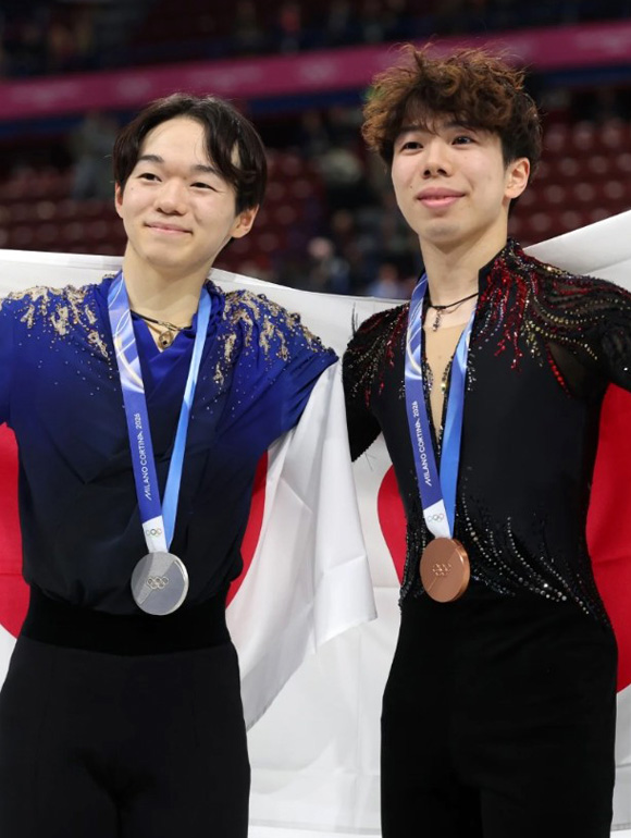 銀メダルの鍵山優真選手(左)と銅メダルの佐藤駿選手(写真はインスタの日本語の公式オリンピックアカウントより)