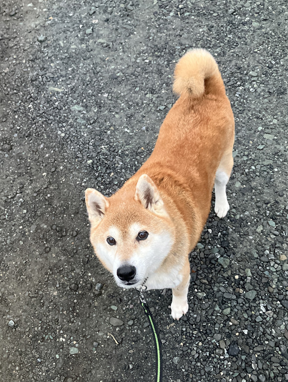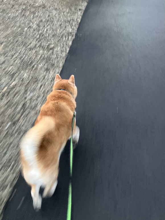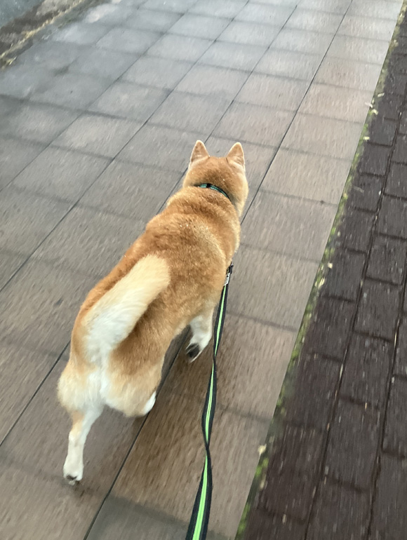 ただ、雨は弱かったので、ポチも僕もレインウェアを着ないで散歩に出かけました。