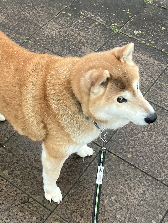 ただ、雨は弱かったので、ポチも僕もレインウェアを着ないで散歩に出かけました。