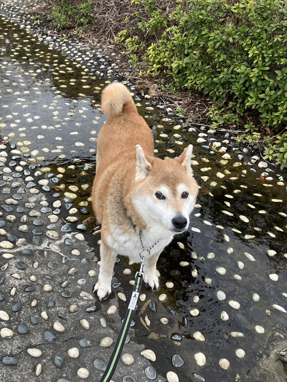 ポチも「せせらぎの小径」では、小川の中に入り、水の冷たさを楽しんでいるような仕草を見せていました。