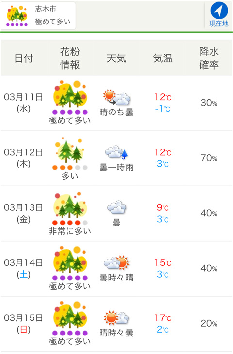 うちの地方も先週から飛散量が「極めて多い」状態が続いています。