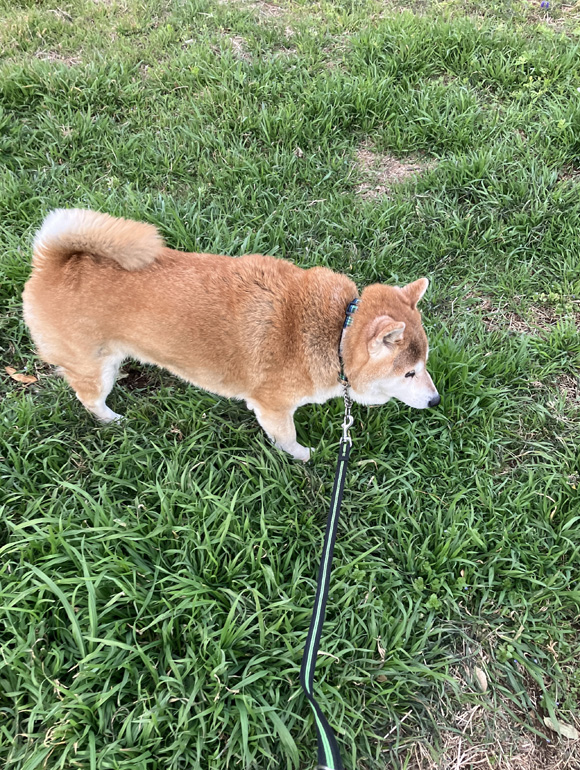 少し眠たそうな顔をしていますが、今日も元気に散歩をしていました