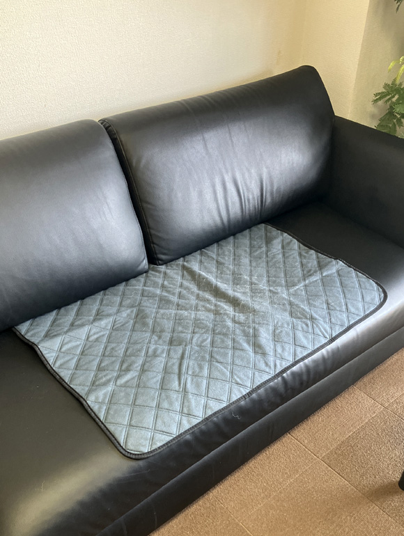 3月に入ってからは何らかの対策が必要かと思い、ソファの上にトイレシートを敷きました。
