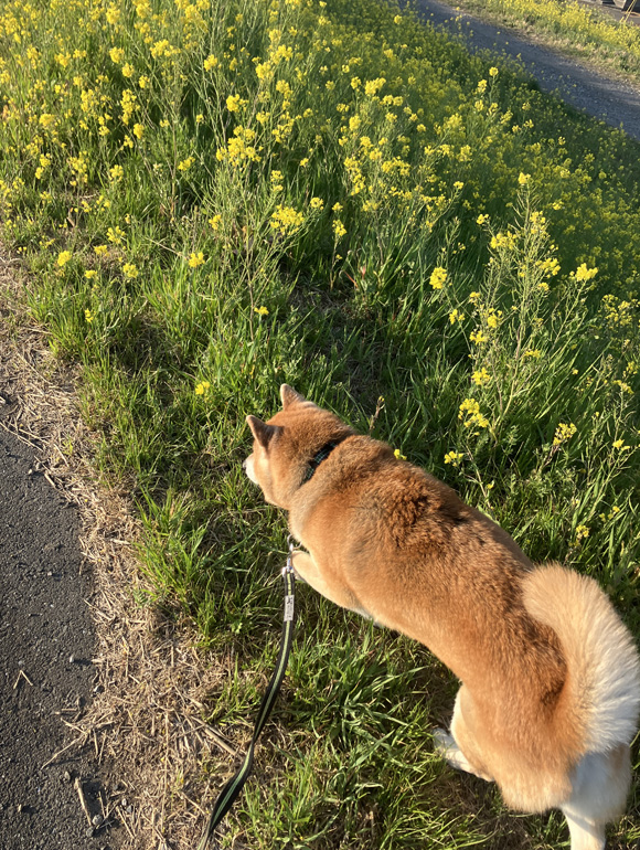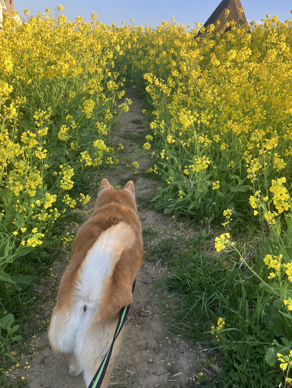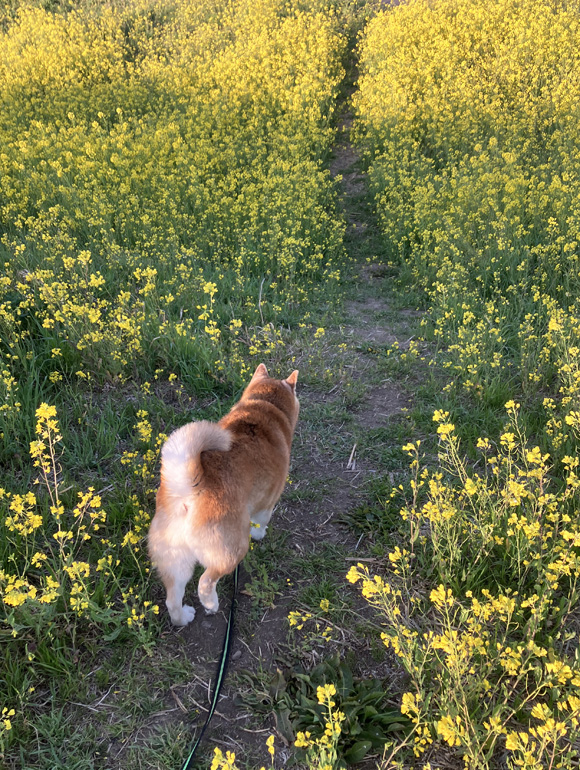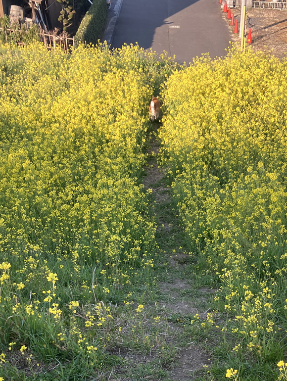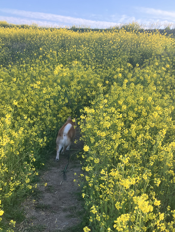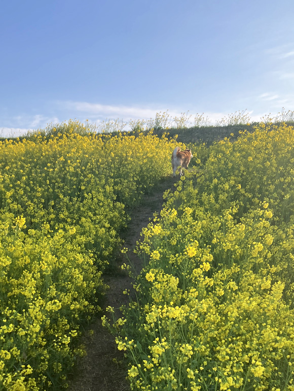 そして、堤防から降りるときも、ポチはやはり菜の花の間を駆け下りていきました。